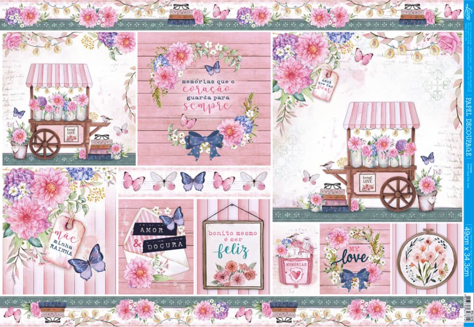 Papel Decoupage Litoarte - Coleção Amor Que Faz Voar - 49x34cm - PD-1079