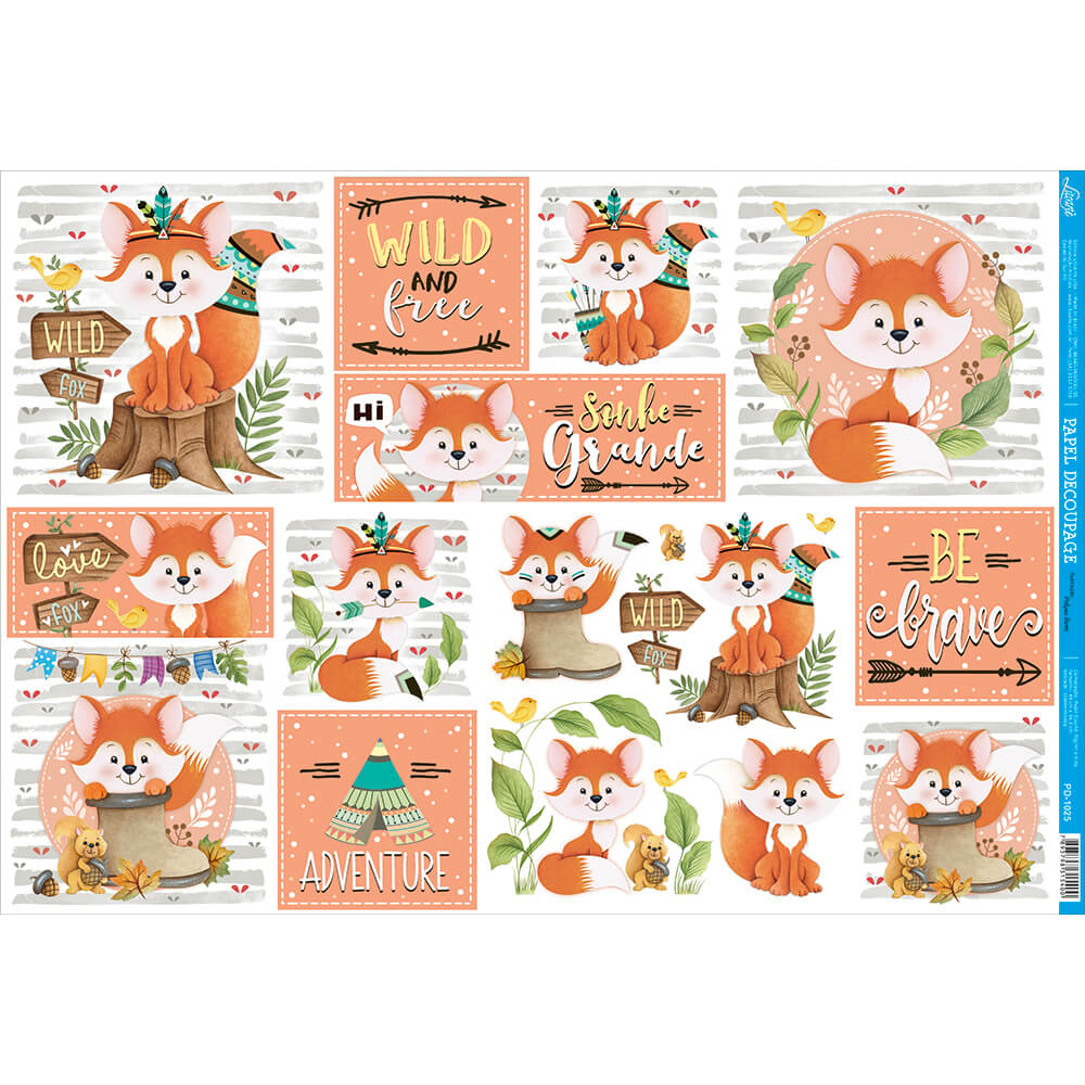 Papel Decoupage Litoarte - Raposa - 49x34cm - PD-1025