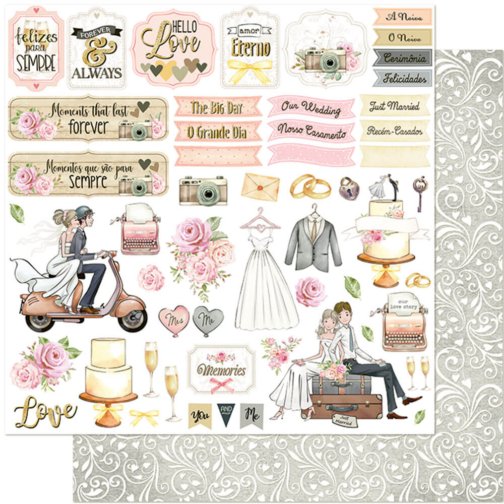 Papel Scrapbook - SD-1121 - Litoarte - Casamento, Recem casasos, Flores 30,5 x 30,5cm