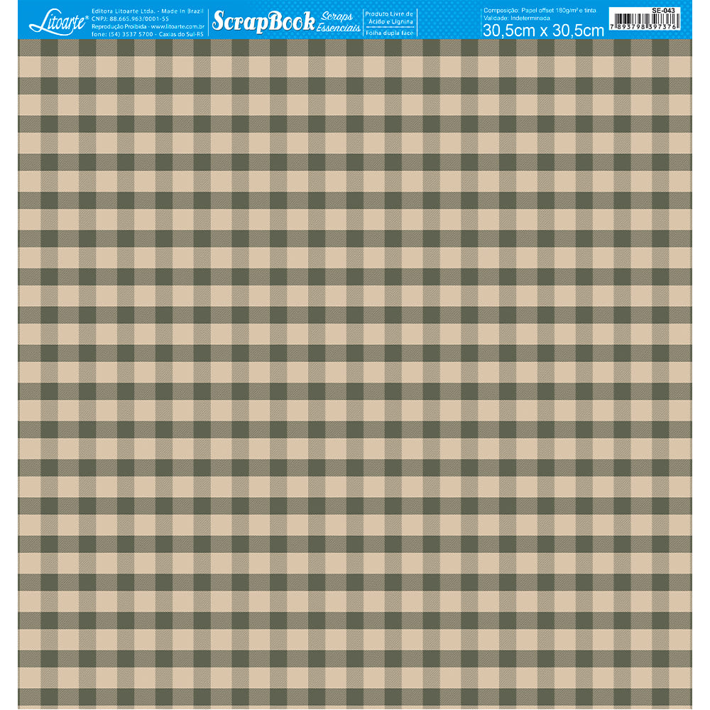 Papel Scrapbook Litoarte 30,5 x 30,5 Descrição Modelo: O Papel para Scrapbook Litoarte, é feito em Papel Offset com gramatura de 180 gr com espessura semelhante ao papel cartão.